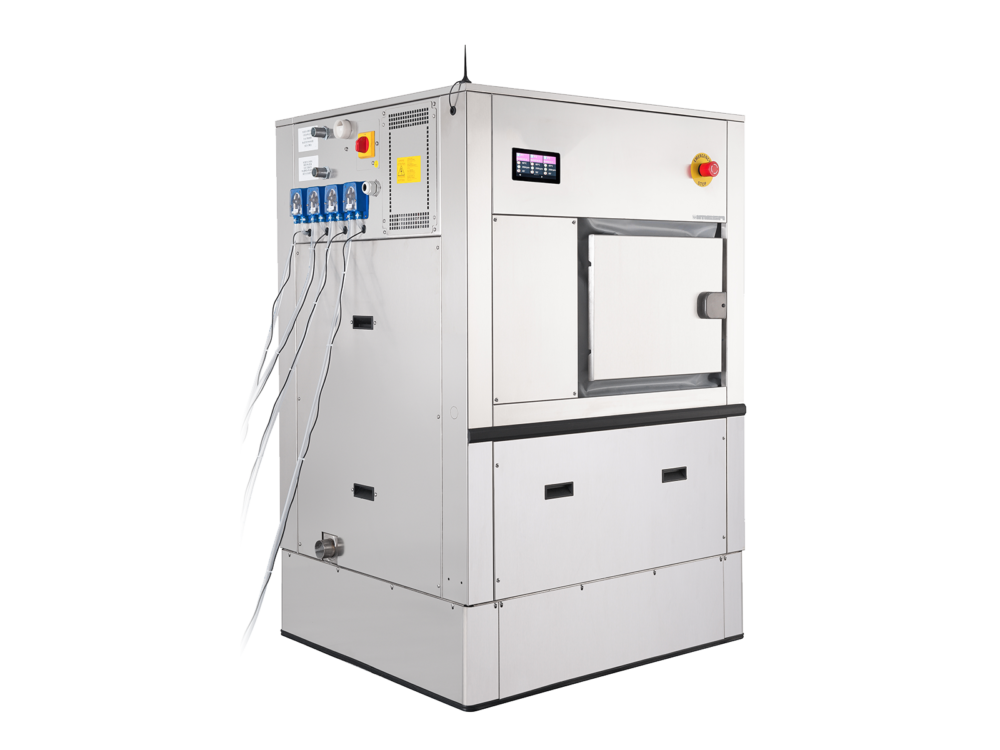 С две врати – една за зареждане и една за изваждане на бельото, като може да бъде монтирана така, че входа и изхода да са в различни стаи. Вратата от чистата страна е програмирана да остане заключена докато е затворена вратата от мръсната страна и докато цикъла приключи. Вратата от мръсната страна е програмирана да остане заключена докато не приключи изваждането на бельото от чистата врата и не се затвори. Програмирането, добавянето на препарат и поддръжката се извършват от мръсната страна, за да се избегне риск от замърсяване и да се поддържа