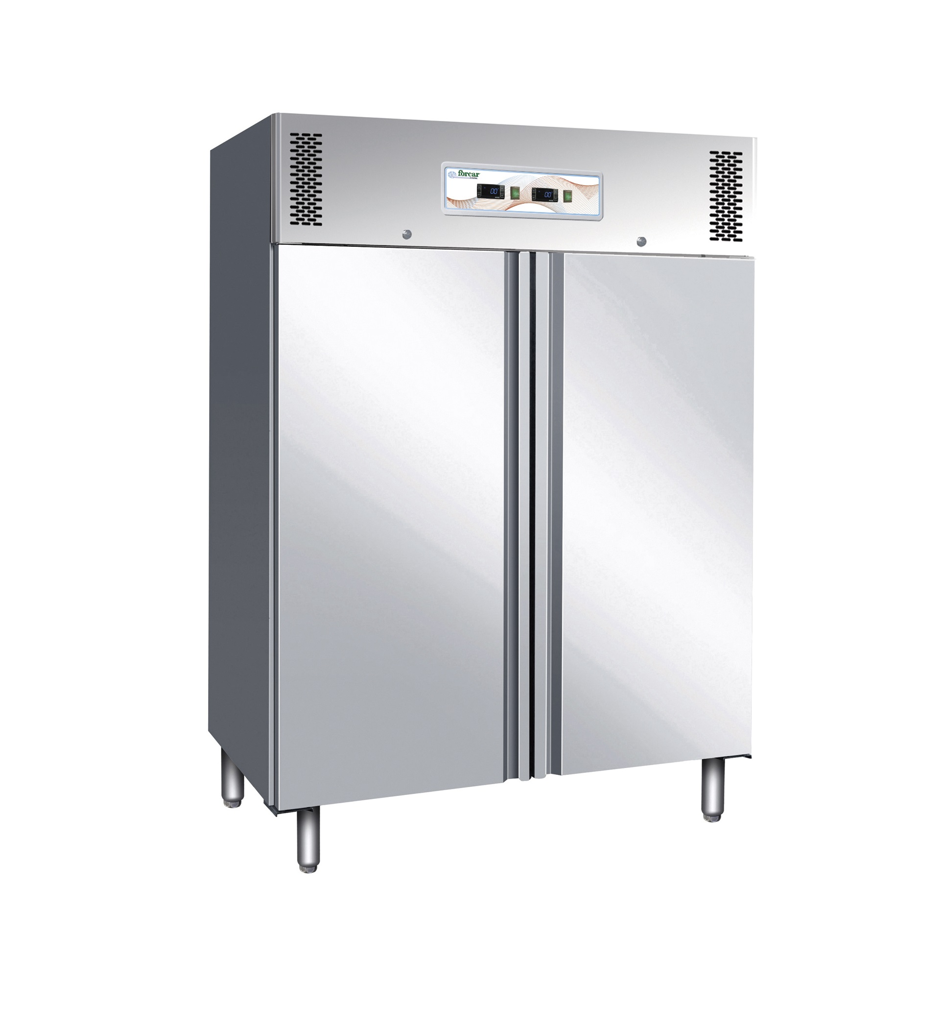 Хладилен шкаф изцяло изработен от неръждаема стомана AISI 304. Динамично охлаждане – скрит изпарител – отделение за компресора с изолирани страни – електронен контрол на температурата с дигитален термостат – електрически нагревател около рамката на вратата, който предотвратява конденз – автоматично размразяване с електрически нагревател и автоматичен контрол на температурата на размразяване – автоматично изпарение на кондензаторната вода – анти-корозионно третиран изпарител. Врата със самозатваряща пружина – заключване на вратата с ключ – свалящо се уплътнение на вратата – вътрешна светлина – дъно със заоблени краища – външните задни и долни панели са от поцинкована плоча. Регулиращи се крака от неръждаема стомана AISI 304.